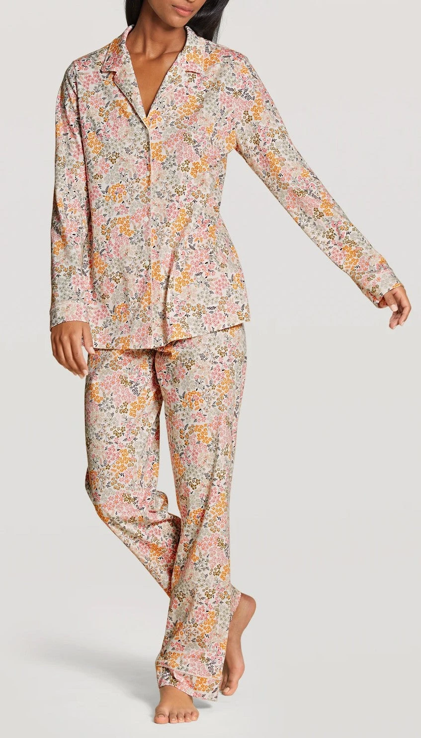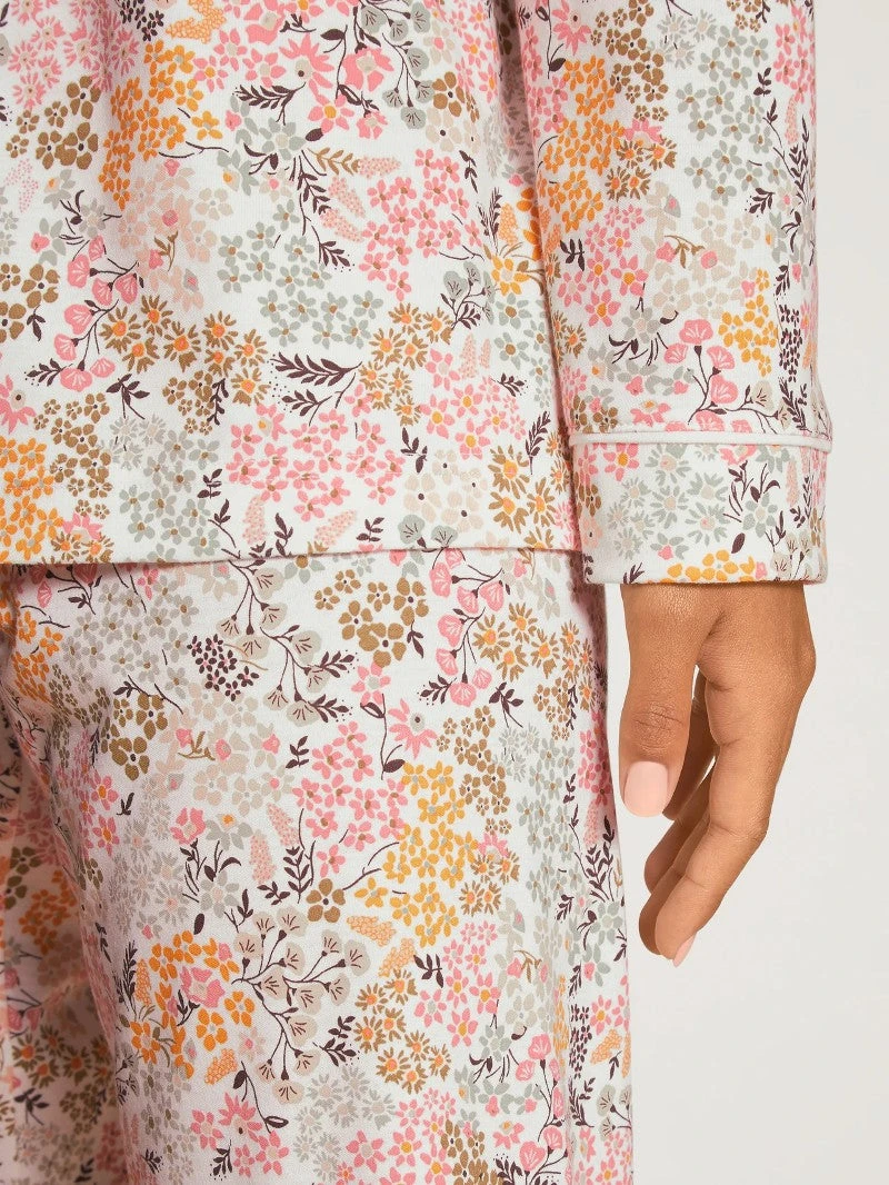 Pyjama boutonné sur toute la longueur et à la coupe classique séduit avec son imprimé mille-fleurs estival et son coton Supima® aéré et durable. Les coutures contrastantes et le confort procuré par les parties élastiques du pyjama viennent compléter le design invitant à la bonne humeur.