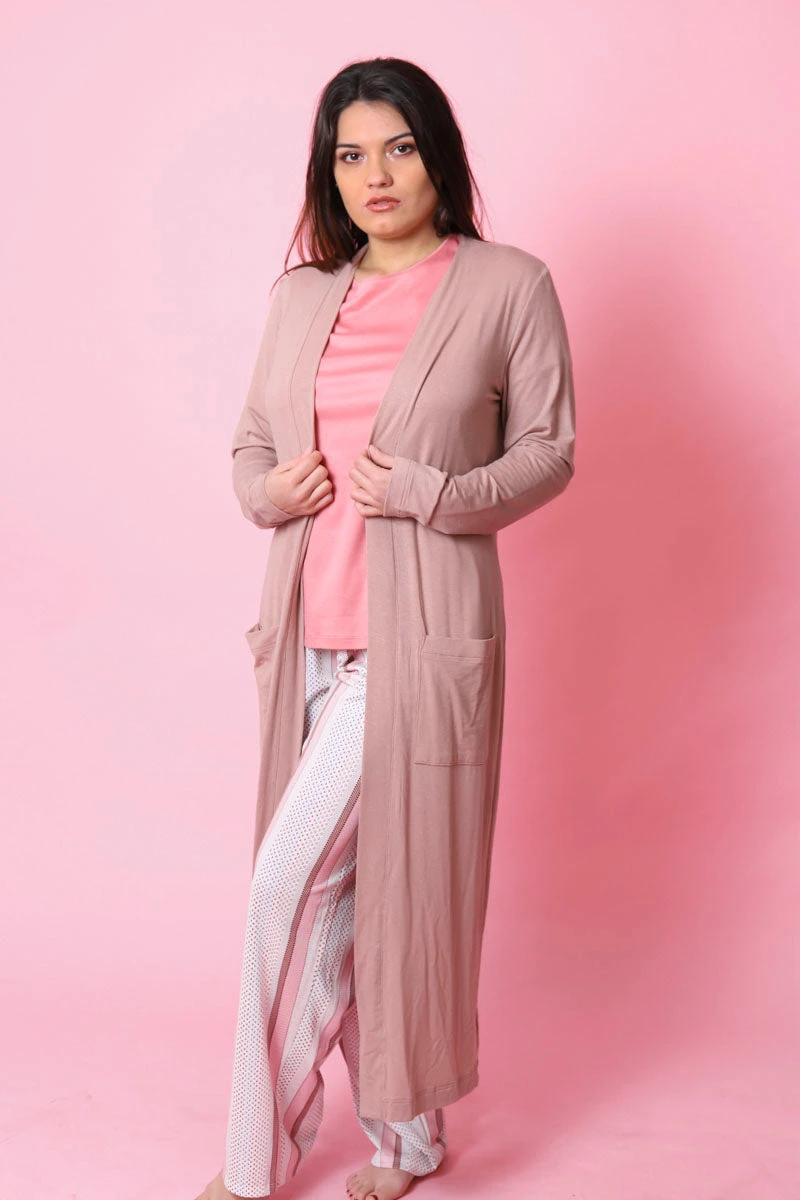 Elégant manteau de la série FAVOURITES JOY de CALIDA. Cette pièce stylée en LENZING MicroModal® et en laine donne clairement le ton en matière de qualité, de tendance et de finitions. Associez-la à un pantalon ou un t-shirt décontracté de la série pour obtenir une tenue lounge de grande qualité !