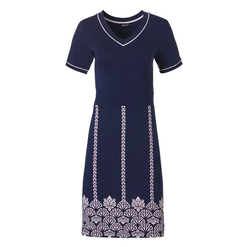 - Chemise de nuit encolure V imprimée bleu marine et rose