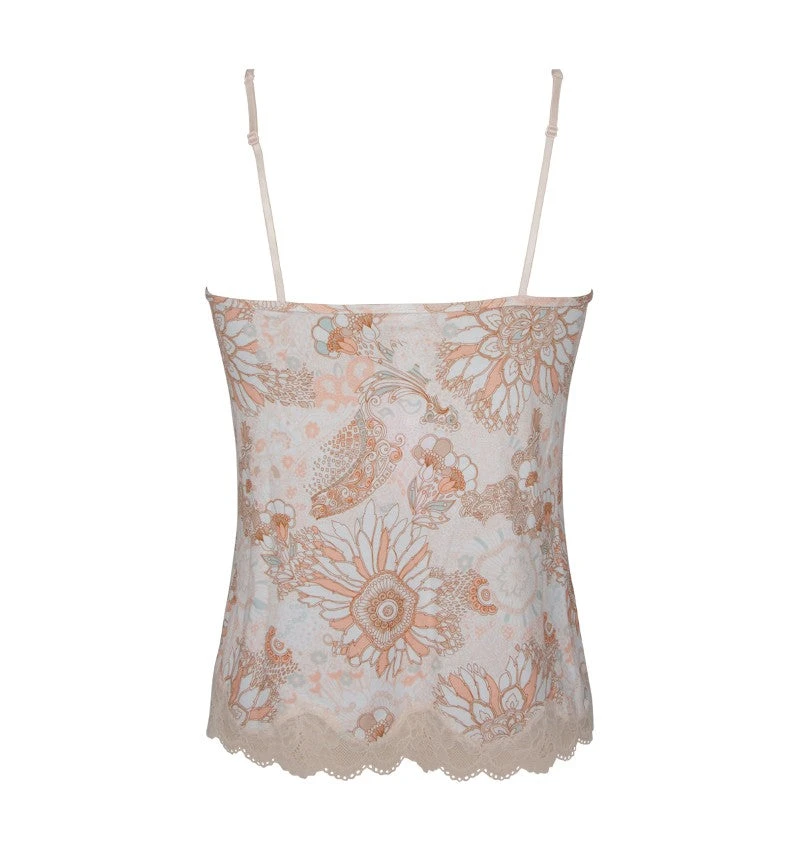 - Caraco tout en maille imprimée avec incrustation d’une dentelle au niveau du décolleté devant et du bas de caraco.