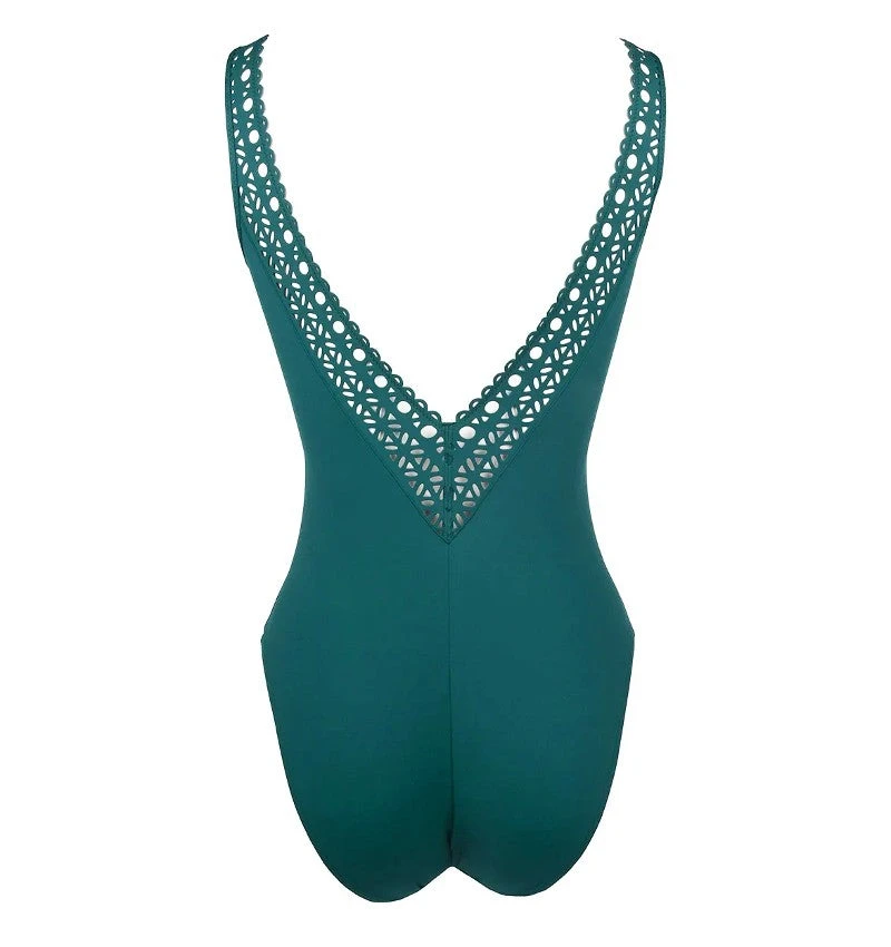 Maillot de bain une pièce bleu marine Ajourage couture de la marque Lise Charmel.