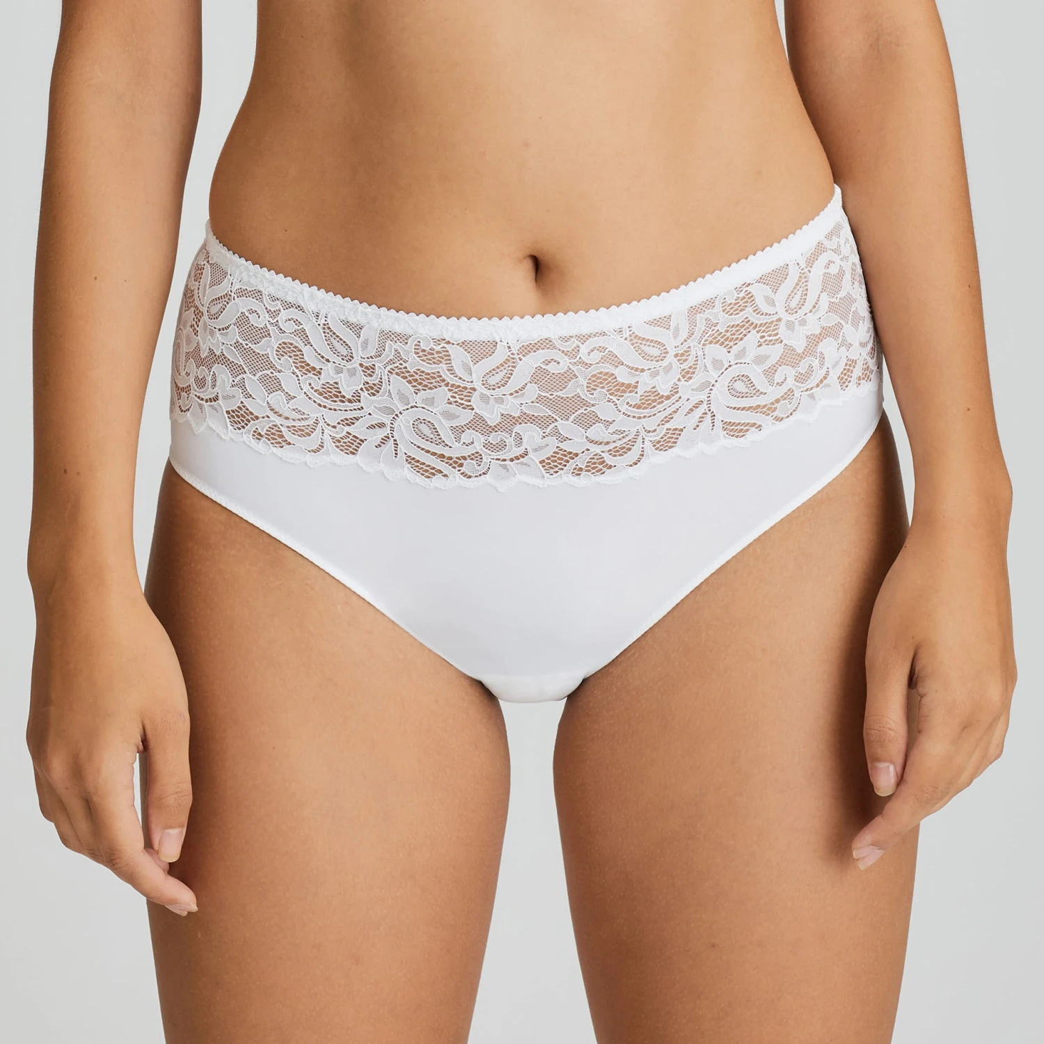 Une superbe culotte taille haute à assortir à l’un des soutiens-gorges en dentelle pour un look délicieusement féminin. Son tissu uni Dentelle vintage dans un blanc éclatant : idéal sous une tenue d’été… ou une robe de mariée !