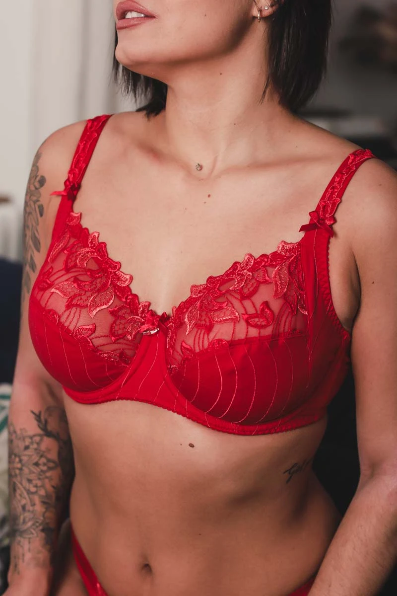 Soutien-gorge emboitant avec armatures de la collection de lingerie Deauville couleur rouge flamboyant de la marque de bonnets profonds Prima Donna.