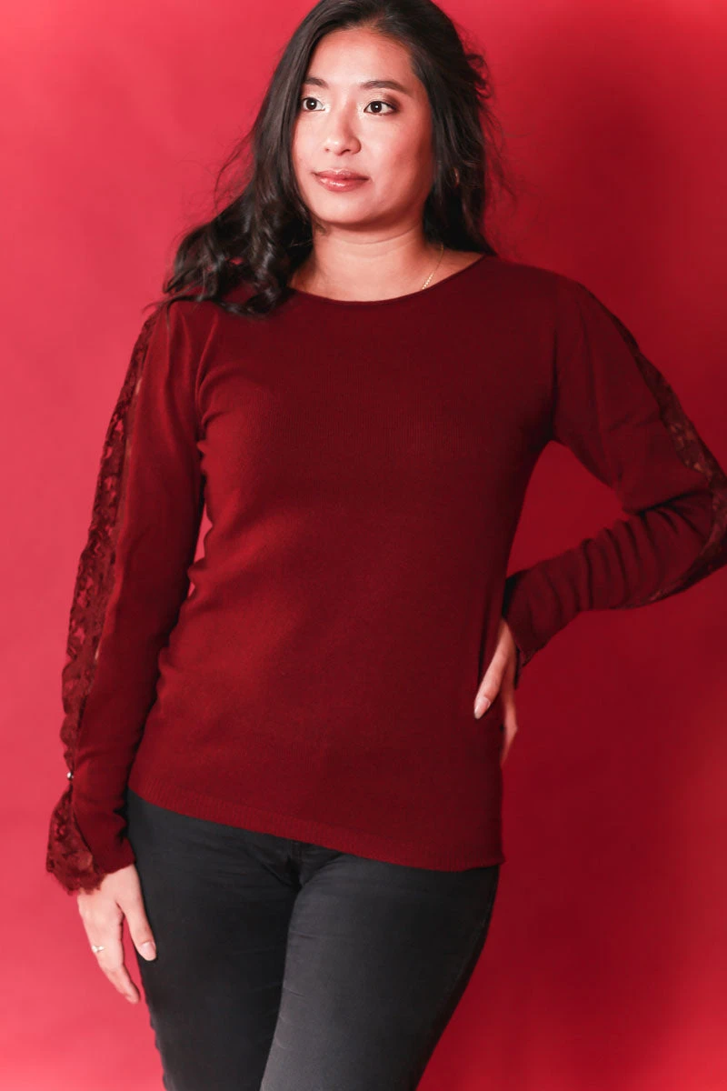 Pull chic haut de gamme Lie de vin en laine et soie et une touche de cachemire de la marque Italienne Oscalito