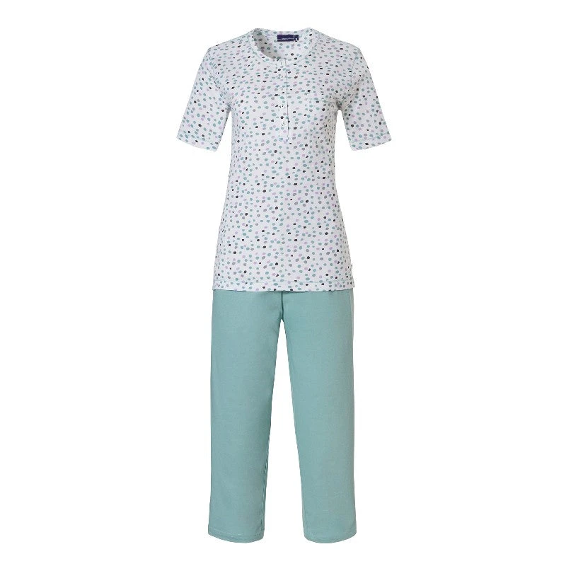 - Pyjama pantacourt à manches courtes blanc à pois colorés