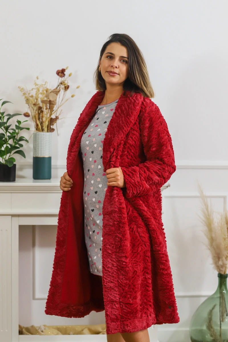 Robe de chambre cocooning rouge de la marque de lingerie de nuit Pastunette
