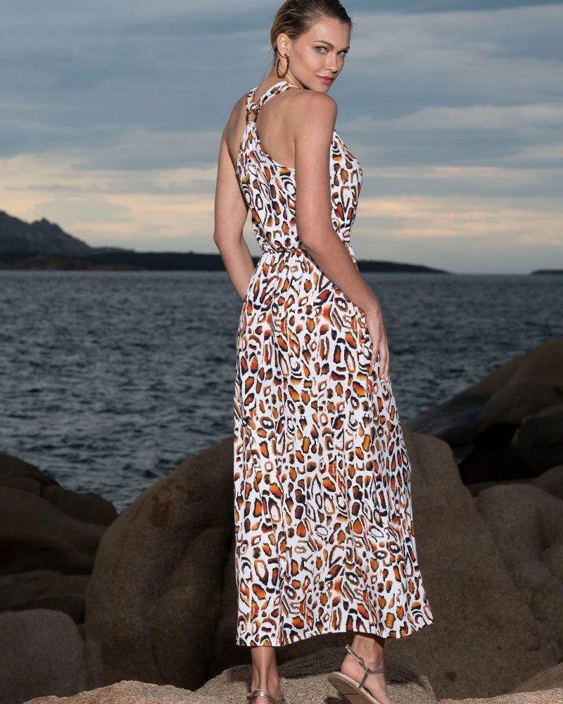 - Profond décolleté V devant et dos à l’américaine enrichi par l’anneau. T