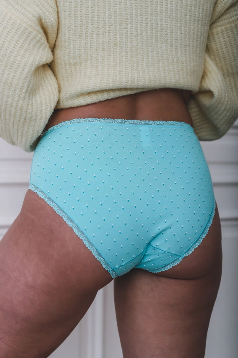- Slip Ă taille haute en coton et qui englobe bien la fesse.