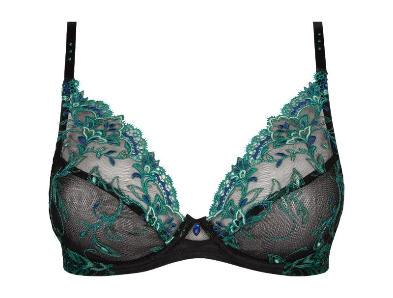 - Basque en tulle, dentelle incrustée et galon brodé milieu dos.