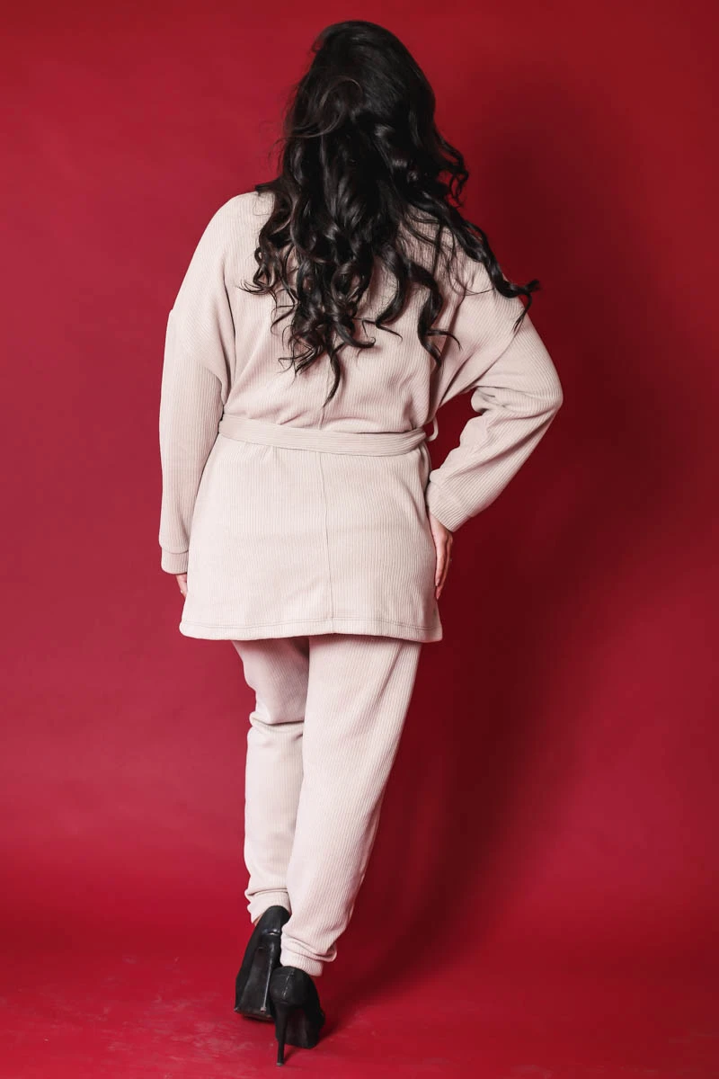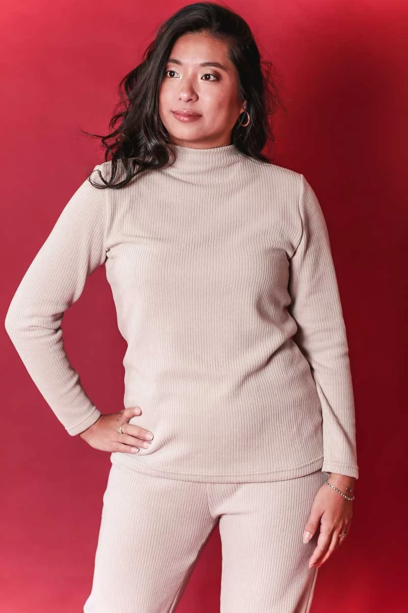 Ensemble doux et chaud avec pantalon et tee-shirt manches longues à col haut. Idéal pour rester détendu à la maison.