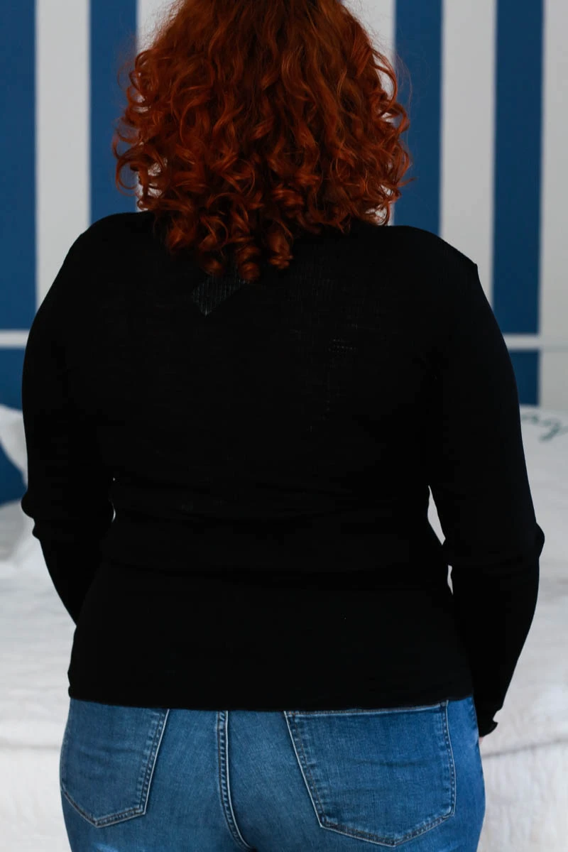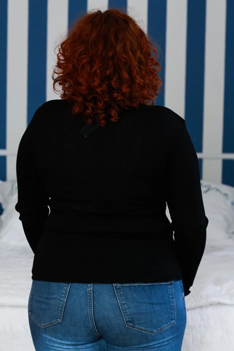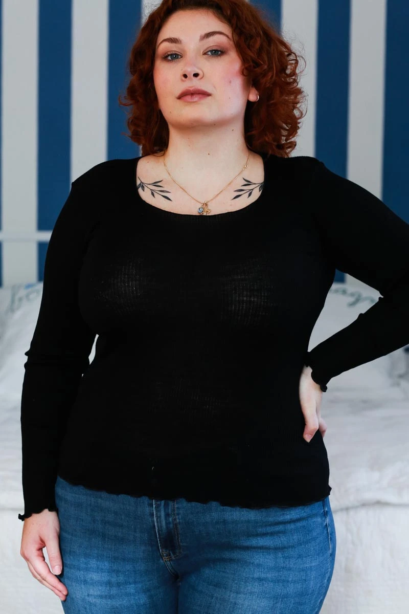 Tricot de Peau à manches longues à côte Noir de la marque de vêtement italienne Fraly :