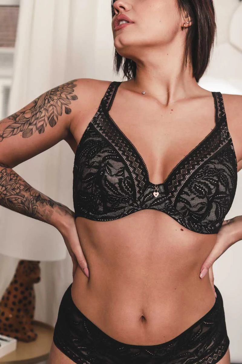 Un look en dentelle sensuelle et tendance en noir indémodable : indispensable dans votre dressing.
