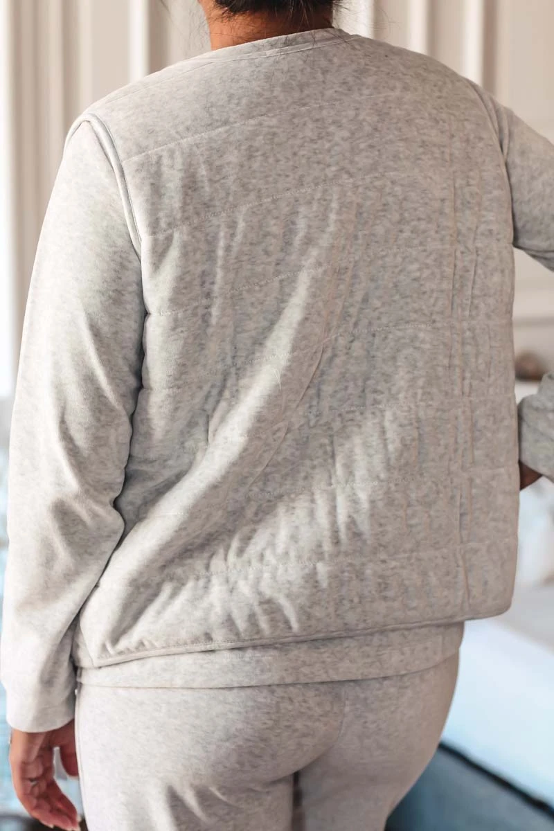 - Matière en velours uni couleur Gris chine
